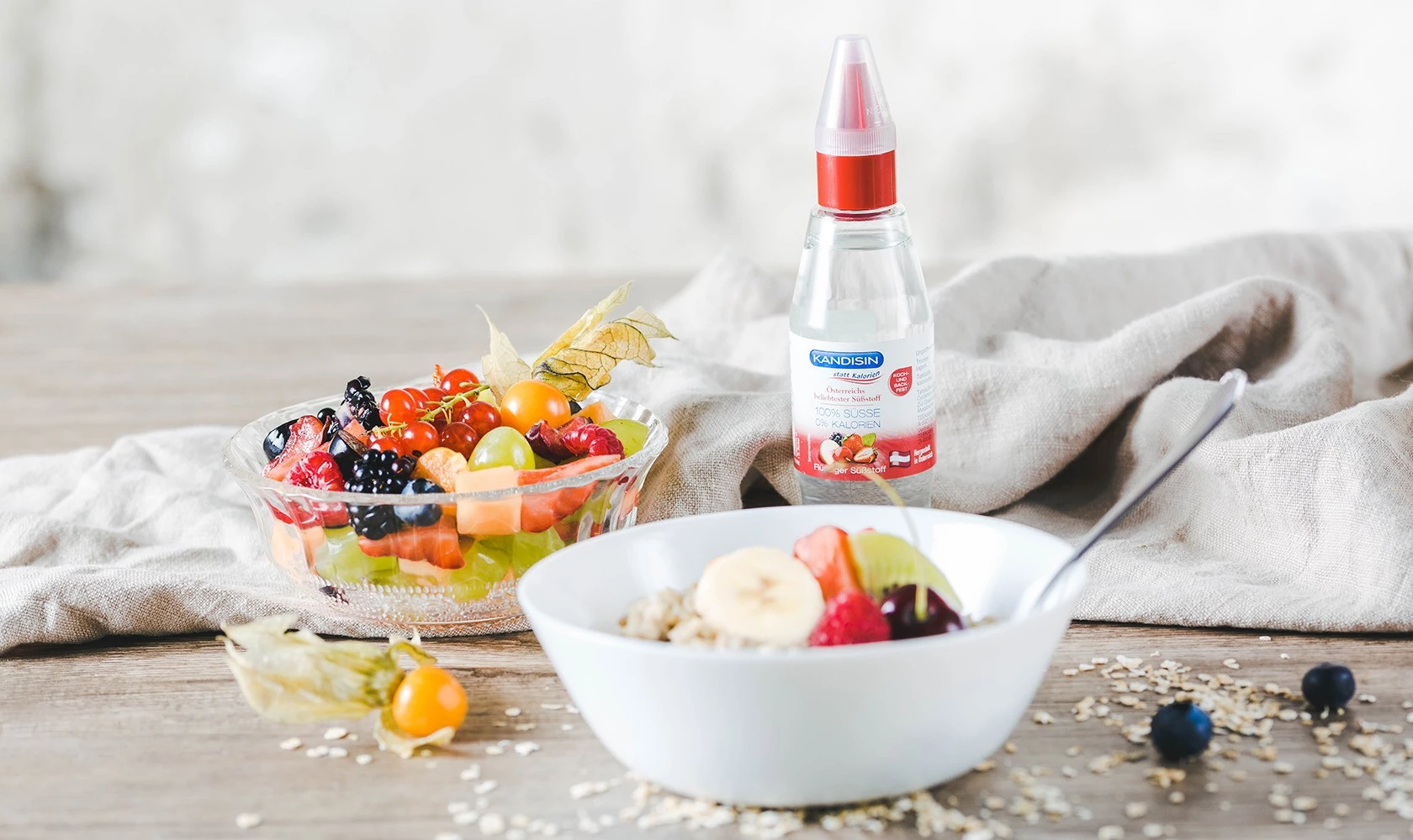KANDISIN in flüssiger Form: Ideal zum kalorienfreien Süßen von Früchten, Desserts, Puddings oder Fruchtsalaten, sowie zum Kochen und Backen. Besonders praktisch ist KANDISIN Flüssig auch zum Abrunden von Salatdressings, da Zucker sich hier nur sehr schwer auflöst.